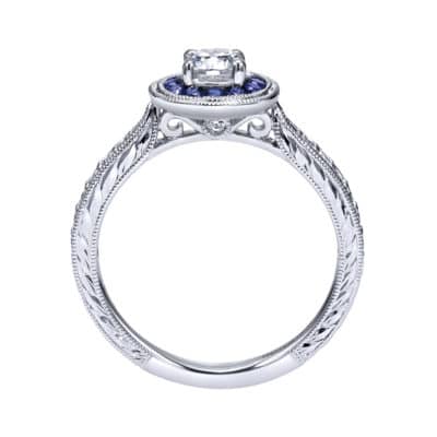 Gabriel Jonas Vintage 14K White Gold Round Halo Sapphire and Diamond Engagement Ring